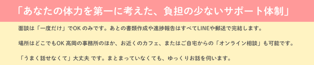 また、報酬は受け取った障害年金の中からお支払いいただくことが出来ますのでご安心ください。