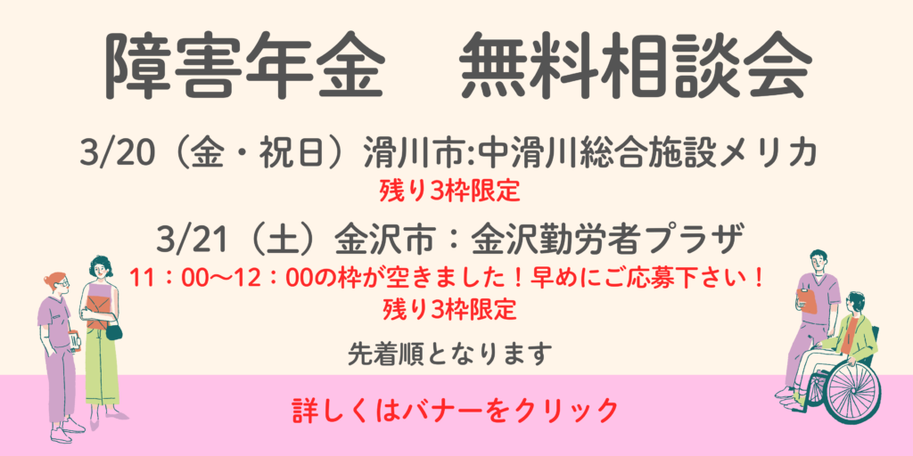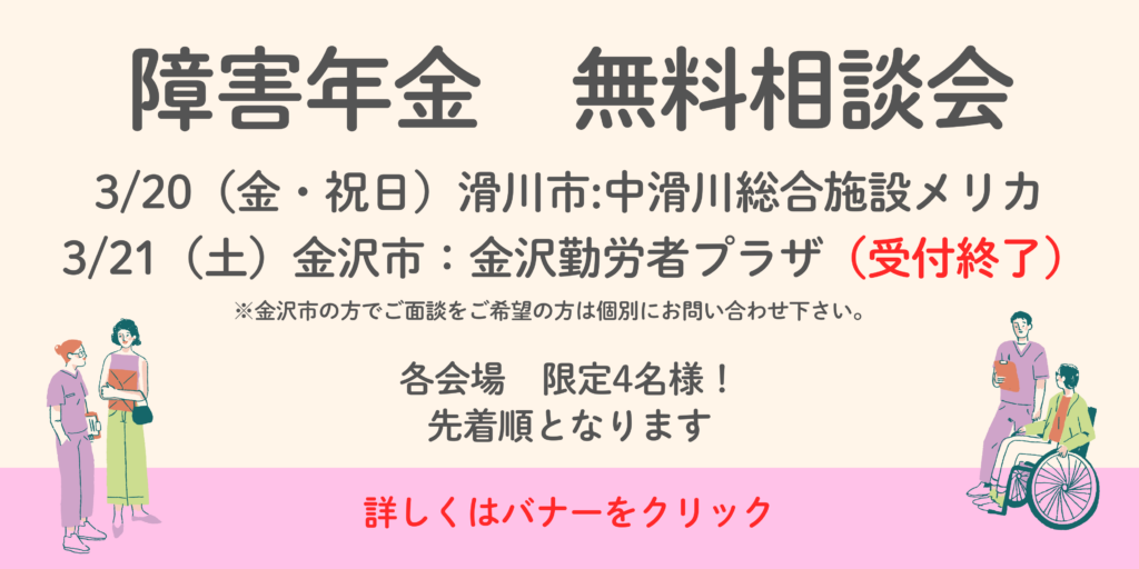 私は、富山県で障害年金の申請をお手伝いをし、経済的な負担を少しでも減らしたいと考えております。このことは、ご本人やご家族の精神的な負担も軽減することにつながります。経済的に楽になることで、治療に専念でき、心に余裕を持てることで、より良い人生を送られるためにご自身の将来について考えるゆとりもできます。富山県で障害年金でお悩みの方は、ぜひお気軽にご相談下さい。